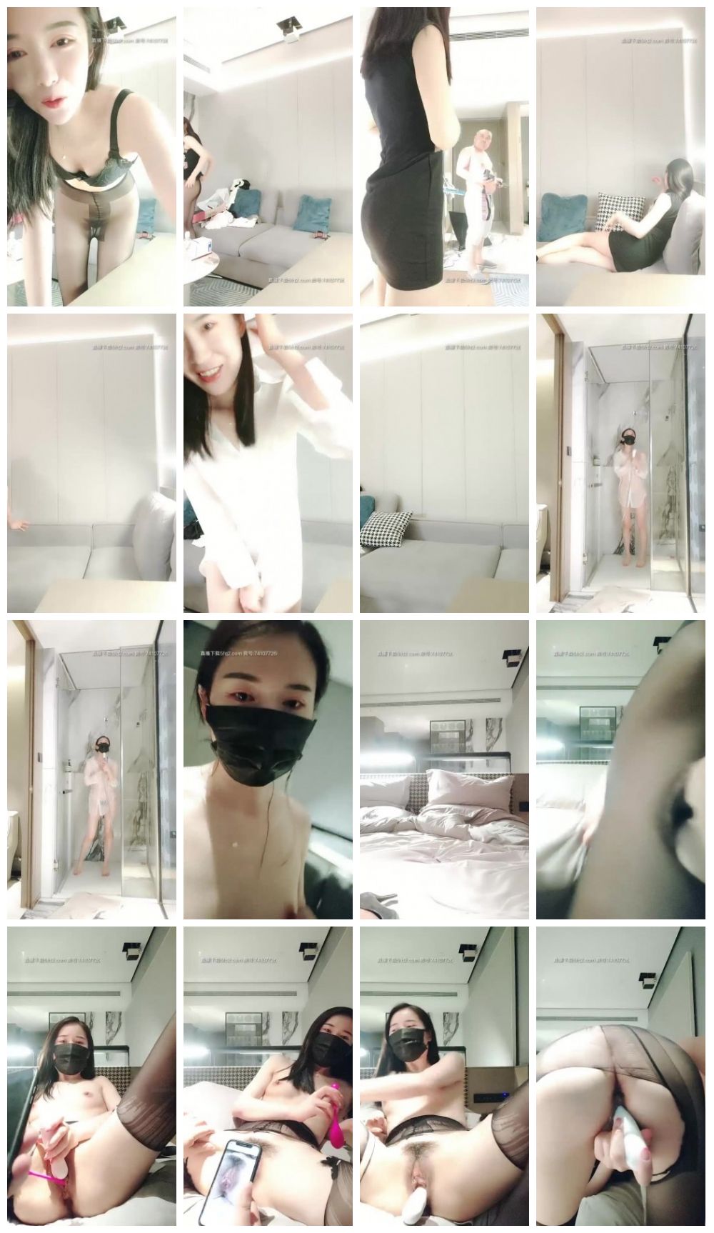 高颜值性感妹子和秃头男约拍包臀裙摆弄姿势,衬衣浴室湿身诱惑黑丝撕裆道具自慰